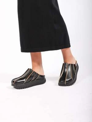 Step out in comfort and style in the Waffo Mule from 4CCCCEES. This slip on mule features a rib-like panel design. These mules have a very cushioned footbed, allowing for ultimate comfort.