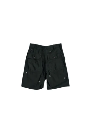 Vintage Army short has hand stitched white daisies scattered about. Made to invoke summer camp or backyard cookouts. Pull on over wet swimsuit or tuck in a silk blouse. Divine any way you wear it.