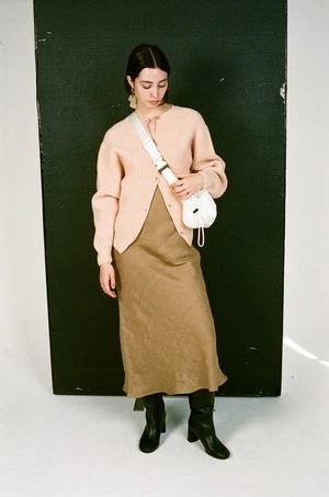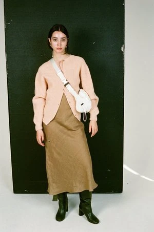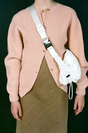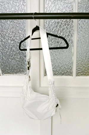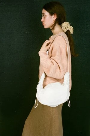 A recycled polyester crossbody or shoulder bag with branded hardware and an internal pocket. Zip closure. Adjustable drawstring sides and adjustable strap.