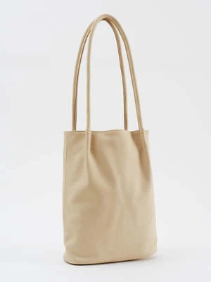Soft form shoulder bag with oval base and two rolled shoulder straps with pinched details on each side. Unlined leather. Vegetable tanned semi-aniline cowhide.