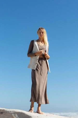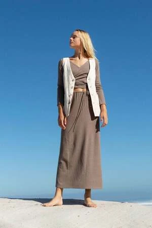 Moda Skirt features a simple silhouette that’s flattering and feminine. The easiest go-to piece you’ll own. Crafted from a unique textured hemp jersey fabric, this skirt will make all your wardrobe dreams come true. You can wear it on the high waisted or on the hips.