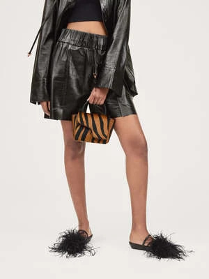 The Montalcino Zebra Mini Handbag by ATP Atelier is a small bag that can be worn in hand and as a crossbody crafted in a bold zebra print fabrication and structured silhouette.