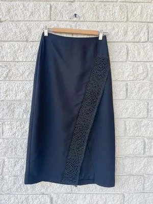 The Brochu Walker Camille Skirt in Black Onyx is a midi-length, featuring a fixed wrap silhouette and exquisitely detailed soutache decorating the front slit. Easily transition from corporate to evening looks with this classy skirt.