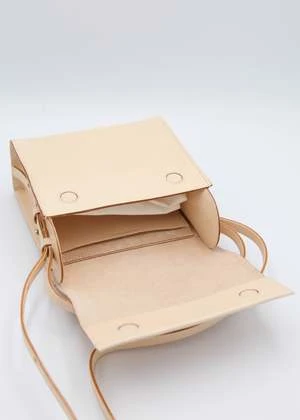 Structural bag in smooth Black leather, magnetic closure, small interior pocket, adjustable shoulder strap.