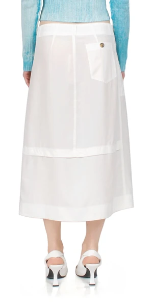 This Ciao Lucia Dino Skirt White is a unique piece to add to your wardrobe! Made with washed sustainable lyocell fabric for a soft hand, this midi skirt offers a relaxed, easy fit and side pockets for convenience. With its versatile nature and classic style, this piece is sure to be a favorite.