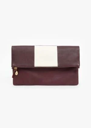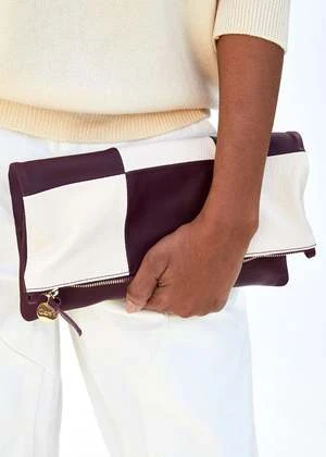 Clare V’s classic fold-over clutch now features added tabs allowing you to transform it into a mini zip-top tote and fits your phone, keys, small wallet, and other essentials