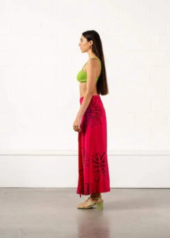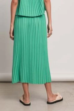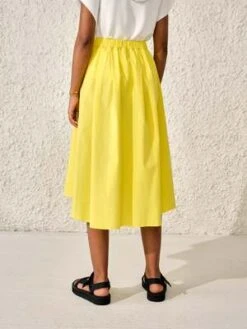 The knee length silhouette features a pleated, mohair-blend construction highlighted by raw hems throughout, and a contrast trim at the waist. Find a zip closure paired with a cute self-tie cord at the side to ensure a snug fit. A subtle contrast logo patch adorns the left front.