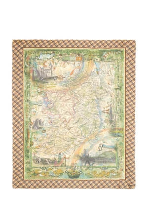 The Irlanda modal and cashmere blend stole in the 140x 175 cm big version is made by the Florentine artist and illustrator Paolo Fiumi and honors the island. The geographical map is transformed into a travel notebook to the discovery of Irish lands and traditions.