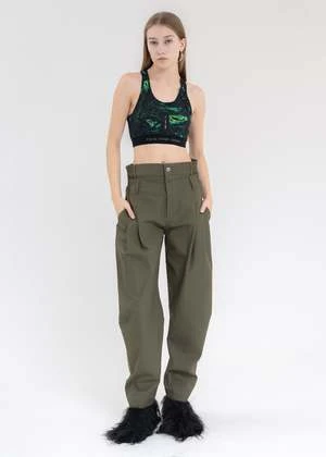 Model is 5’7″ (172 cm), 98 pounds (44kg), usually wears S in tops. A size 25in denim and S in trousers. Size 8 in shoes.