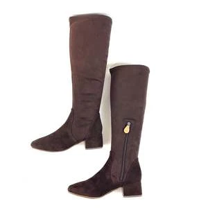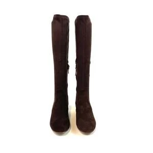 A plain toe and block heel balance a versatile knee-high boot that features a stretchy shaft and cushioning for premium comfort.