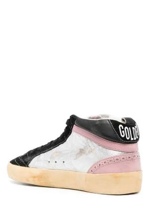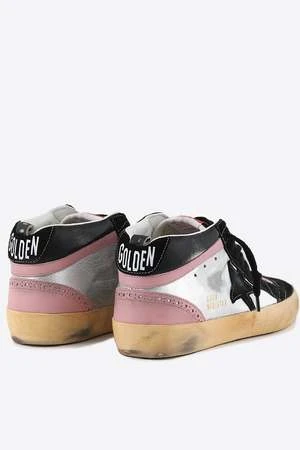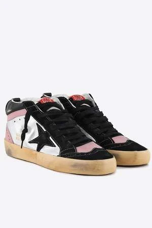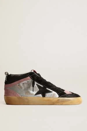 Golden Goose Mid Star Sneakers w. Laminated and Nappa Upper and Suede Toe, Star and Heel in Silver, Black and Antique Pink