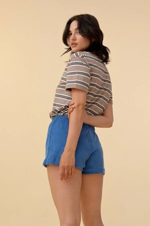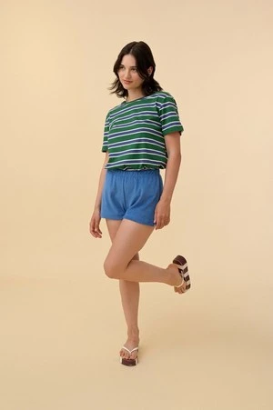 Shorts in Belgian towel quality fabric with an elastic waist. Assorted bralette available. Also in red.