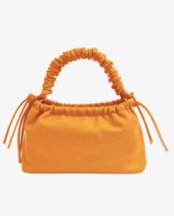Shoulder bag with wrinkled detailing on the handle, string details and zip closure. It contains one main compartment with two small inner pockets and one zip pocket. It comes with an attachable crossbody strap.