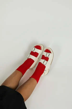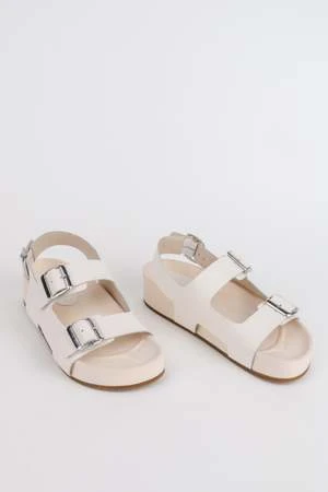 Obsessed with this minimal two buckle sandal with back strap. We love the over lasted straps that piece into the sole of this low rise flatform.