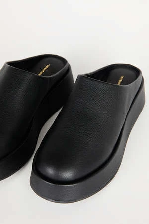 RISEN is our latest update to our closed toe slide story, and we love this new shape. Flared platform and round bubble toe, make this version very fresh and a perfect way to style your casual looks from day to night.