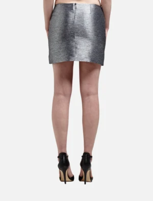 IRO’s Annabel skirt is a futuristic mini, made in a beautiful metallic silver. This skirt features an asymmetrical hem, hidden back zip closure and banded front panelling detail.