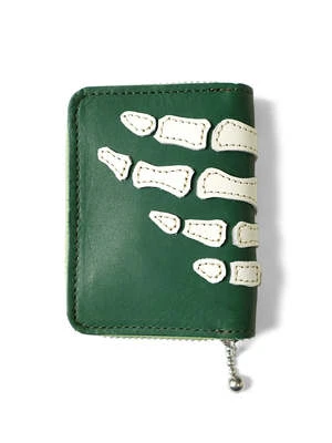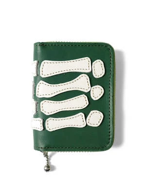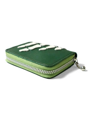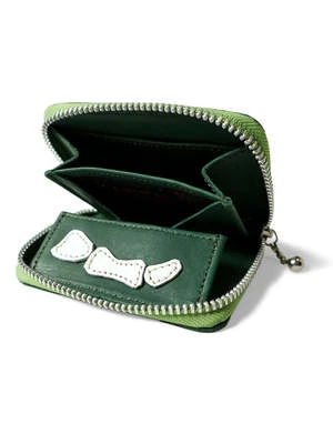 A compact 2TONE round zip mini wallet decorated with leather in the shape of a hand.