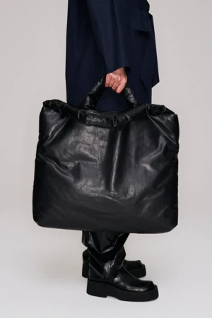 The Pillow bag large is crafted from the signature coated cotton-blend canvas in black. The bag features two lengths of straps and an internal slip pocket. Carry the bag on the shoulder or across the body using the additional strap. The Pillow bag is soft, cushiony and durable, designed to meet the needs of modern-day life.