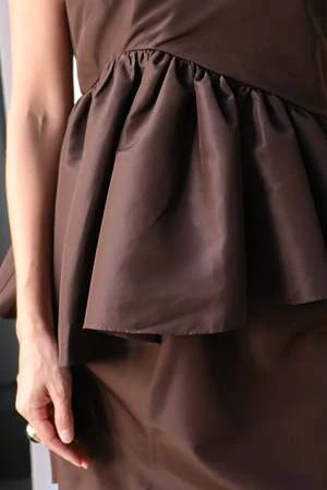 Kika Vargas Camilla Top in Chocolate. Tank top with asymmetric ruffle hem. Hidden zipper at side.