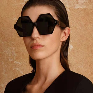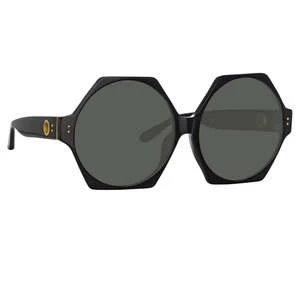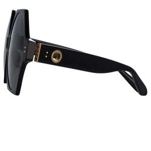 The Bora sunglasses from the LINDA FARROW collection are careful balance of size and weight. The round lenses allow the frame to be oversized without becoming heavy and are juxtaposed with a fine angular acetate frame. Hewn from recycled black acetate the style carries sculpted nose pads and temple tips for comfort.