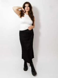 say hi to a true wardrobe chameleon. we’ve perfected the classic slip skirt; a wardrobe essential that truly goes with everything. we used a wrinkle resistant stretch satin to keep things comfy while always looking pulled together. the design features a side zipper, a slit in the back and is lined halfway for extra polish.