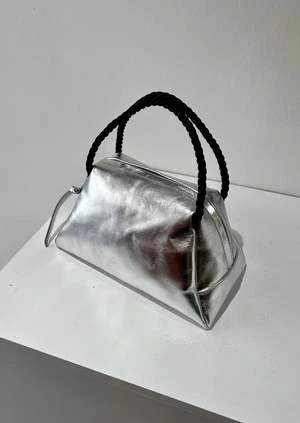 The Sun Purse by Maryam Nassir Zadeh is a calf leather purse with top zip closure and corded handles in black. Fully lined with interior pocket.