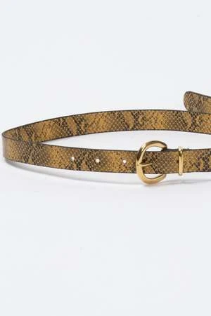 Classic thin belt with a slightly smaller bronze buckle than our Thin Estate Belt, in Snake Print Leather. Great with dresses and dressier outfits.