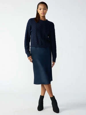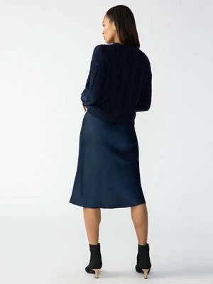– Semi High Rise Satin Midi Skirt