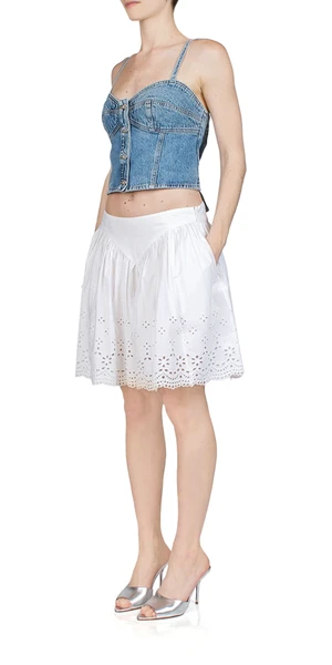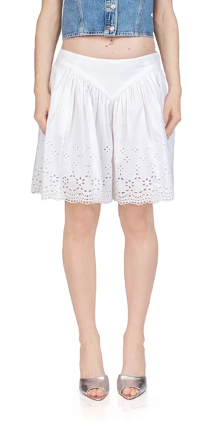 Be the perfect summer companion in these lightweight and comfortable Jas Shorts from Sandy Liang. Crafted from soft white cotton, these shorts boast a relaxed leg and full silhouette. Flattering yoke construction and intricate eyelet detail complete the look. Be effortlessly chic wherever your summer day takes you.