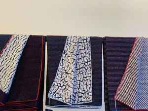 From left to right : Blue and red stitches / Blue and Copper stitches / Gold and red stitches