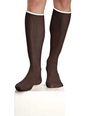 Knee-high socks made out of fine mesh with contrasting cuffs