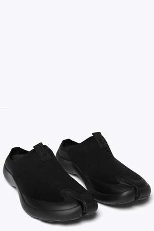 Tabi mule feature a split between the big toe and the rest of the toes to promote balance and stability. Tabi shoe features comfortable textile upper with rubberised logo on the heel. Tabi uppers are made from Tencel Flyknit (tree fibres). Tabi injection EVA outsole are made of sugar cane. Tabi insoles are made from algae-based EVA foam.