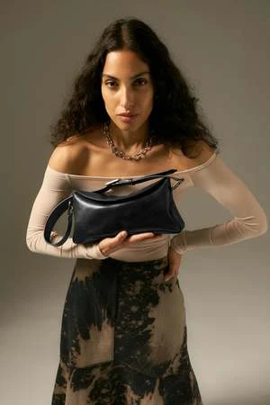 Black Leather Hanoi Bag from Vagabond Shoemakers. A contemporary shoulder bag created as part of an exclusive capsule collection Atelier by Vagabond. Crafted from black supple leather. Magnetic flap closure. Decorative leather piping. Adjustable shoulder strap. Metal hardware details. Zipped interior pocket. Leather lining.
