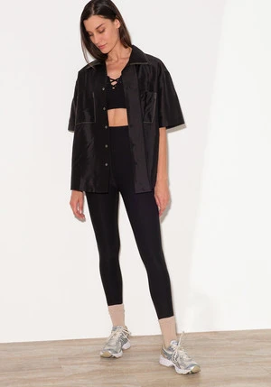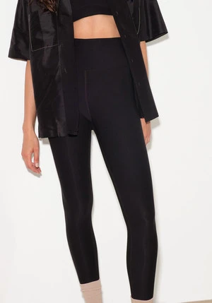 High-waisted full length black legging made from a stretch active jersey with a compression fit.3 self-fabric layers at front waistband give extra shaping compression.Made with Stretch Active Jersey.Interlocking tight-knit creates compression while maintaining lightweight and airy feeling.