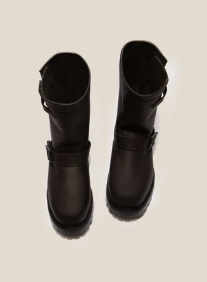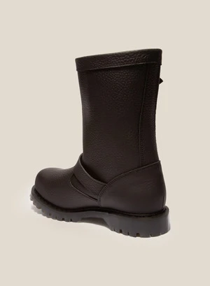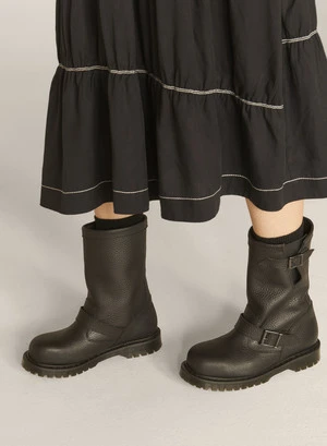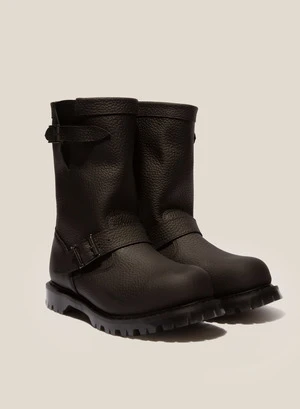 Chunky biker boot constructed in premium grained leather featuring steel toe caps. Designed in collaboration with heritage British footwear brand Solovair, established in 1881.